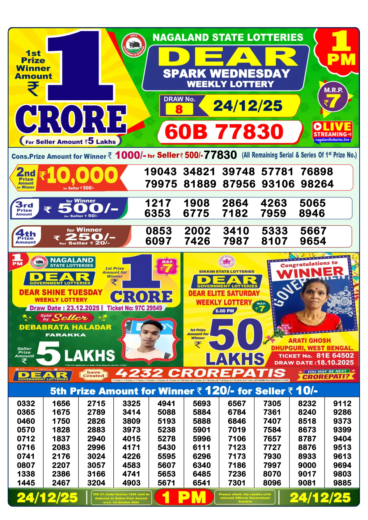 The anticipation reached its peak as the results for the Nagaland State Lottery - Dear Regal Wednesday draw, held on 24th December 2025, were officially declared. Fortunes shifted overnight for many, with dreams turning into reality across the nation.