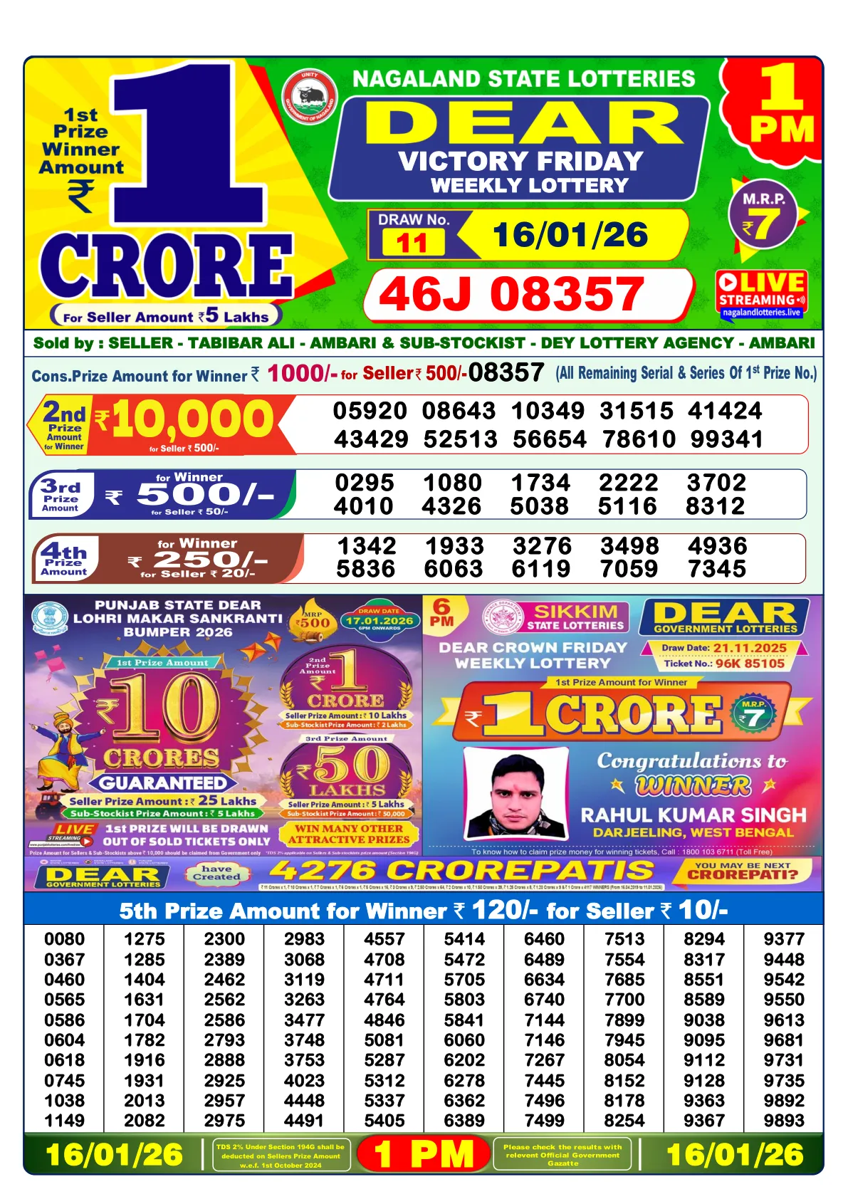 Nagaland Lottery: 'Dear Victory Friday' Draw Unveils Fortunes on Jan 16, 2026!