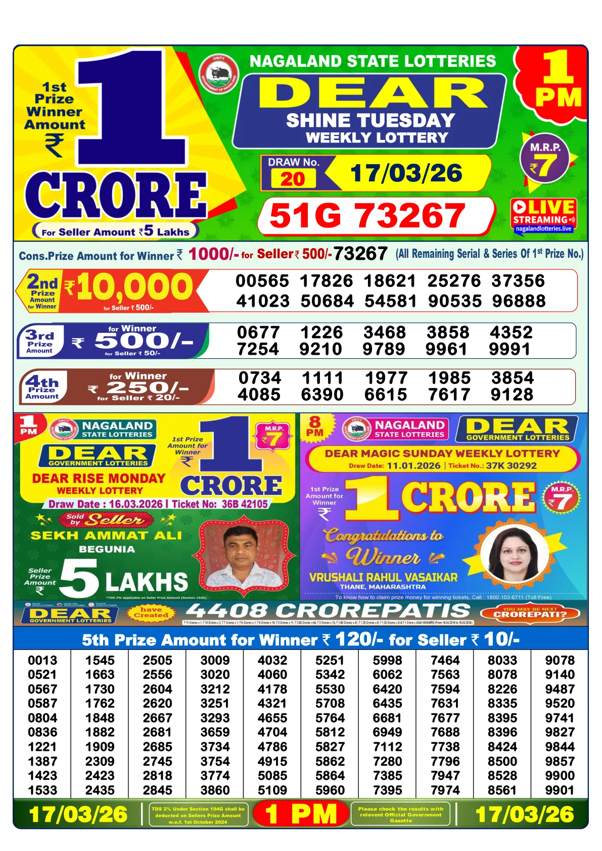 Nagaland Lottery Dear Shine Tuesday: A Fortunate Tuesday Shine on March 17th, 2026!
