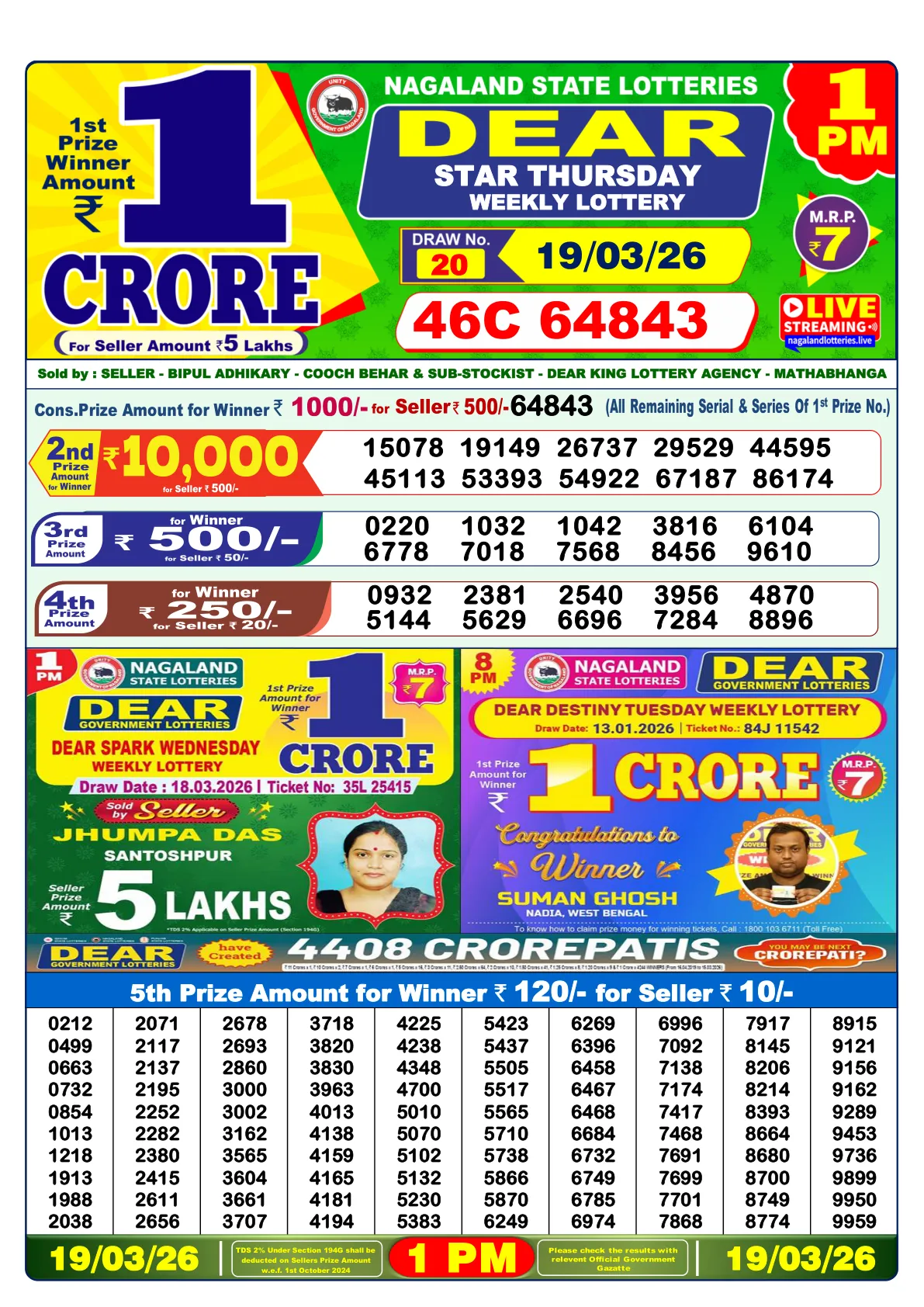 The air was thick with anticipation as the Nagaland State Lottery’s 'Dear Star Thursday' draw results for March 19th, 2026, were unveiled. For countless dreamers across the nation, this draw held the promise of a brighter future, and indeed, it delivered for one exceptionally fortunate individual!