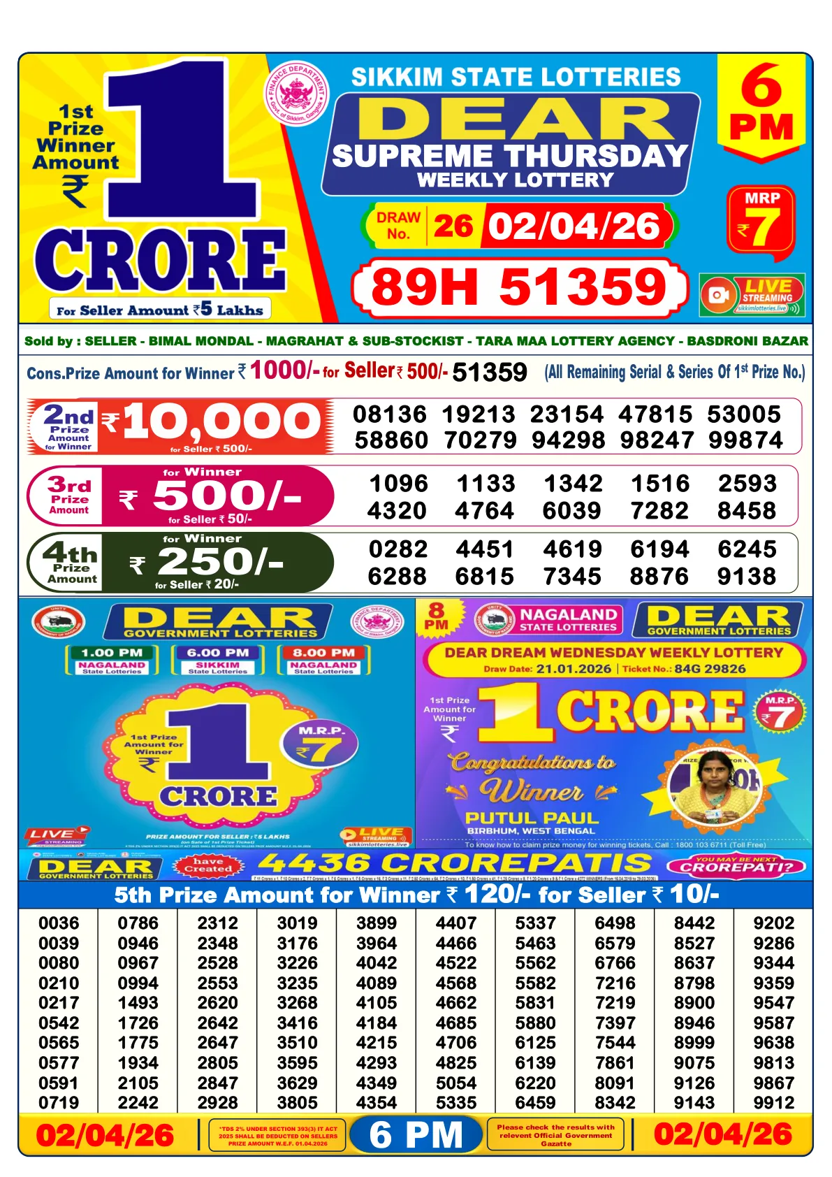 The air was thick with anticipation on Thursday, 2nd April 2026, as countless hopeful participants eagerly awaited the results of the Nagaland State Lottery - Dear Supreme Thursday draw. The declaration brought immense joy and a life-changing fortune for one incredibly lucky individual, whose number shone brightest amongst thousands.